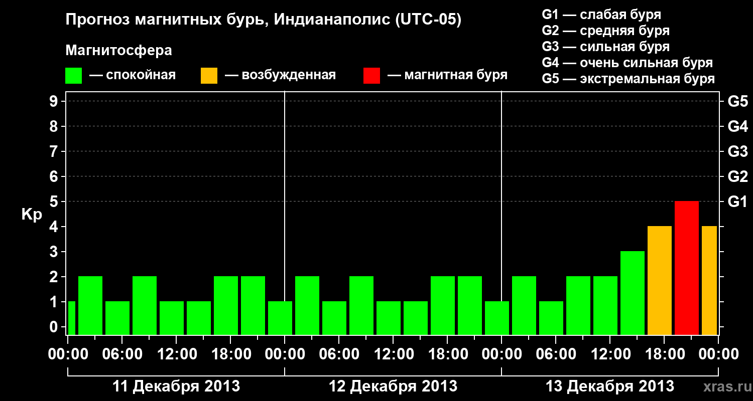 Прогноз магнитных бурь в Индианаполисе — 11 декабря 2013 года