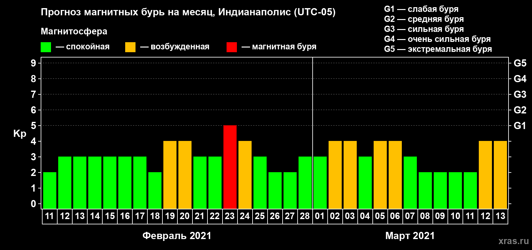 Прогноз магнитных бурь в Индианаполисе — 11 февраля 2021 года