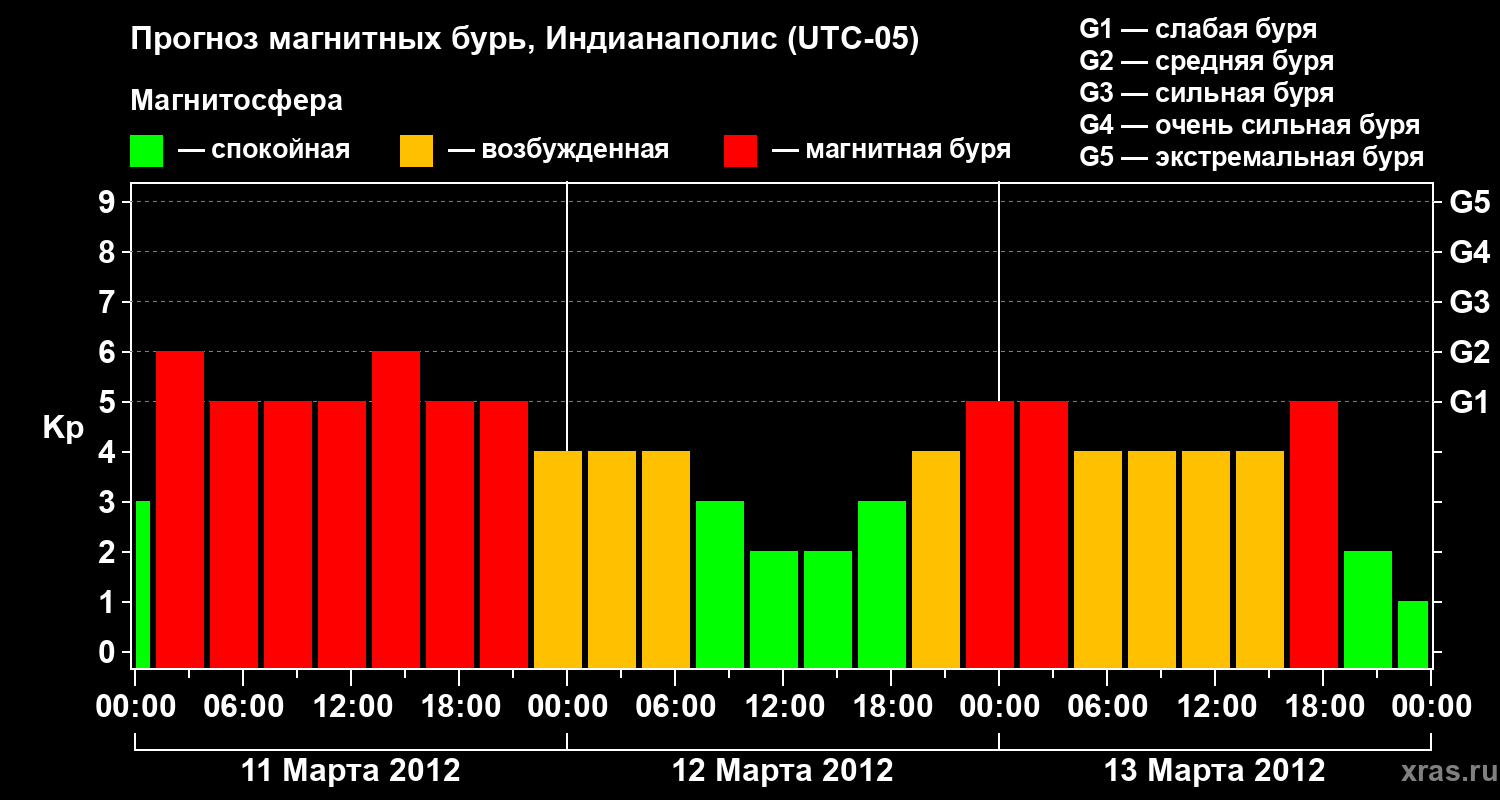 Прогноз магнитных бурь в Индианаполисе — 11 марта 2012 года