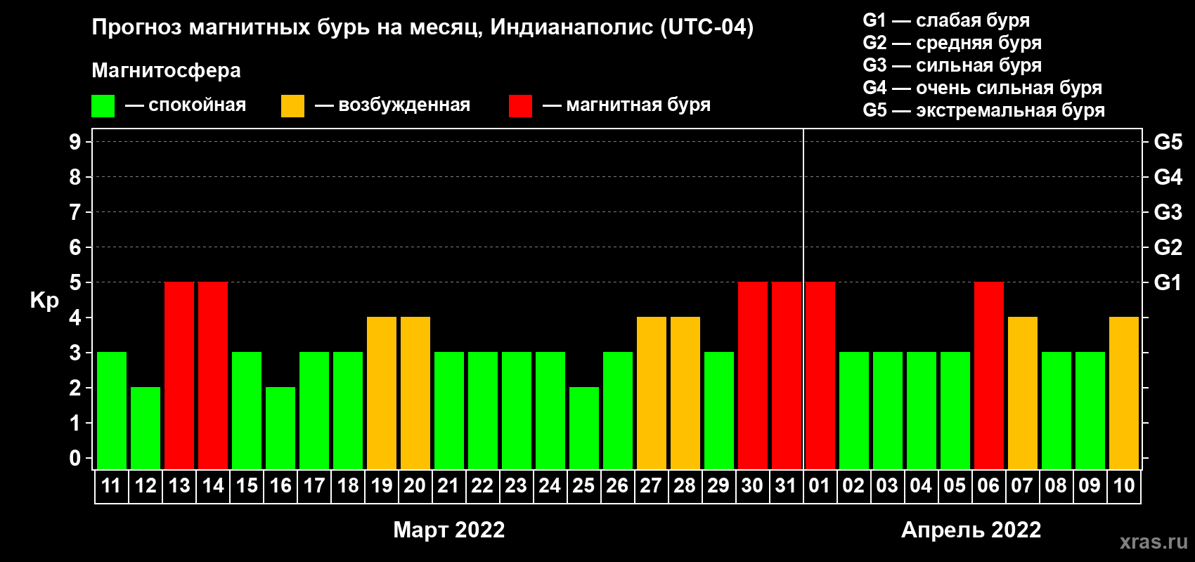 Прогноз магнитных бурь в Индианаполисе — 11 марта 2022 года