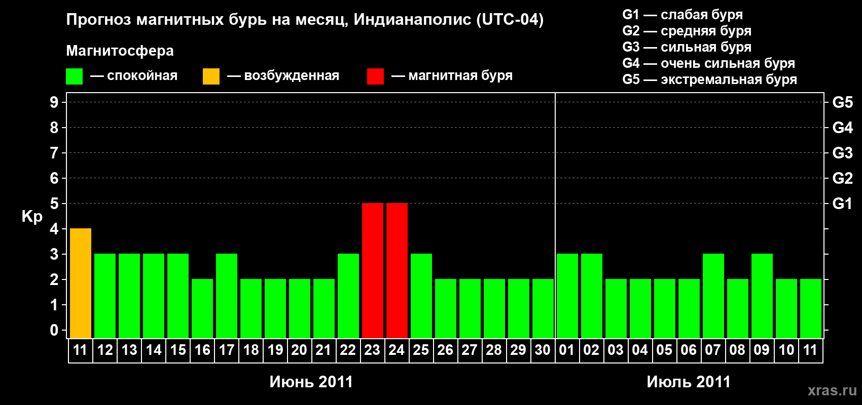 Прогноз магнитных бурь в Индианаполисе — 11 июня 2011 года