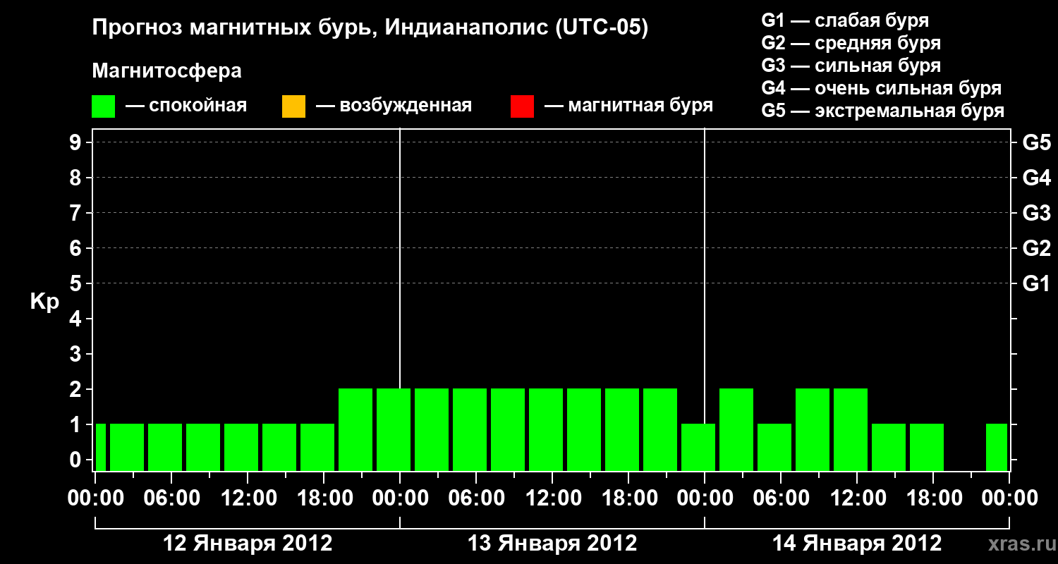 Прогноз магнитных бурь в Индианаполисе на 12 января 2012 года