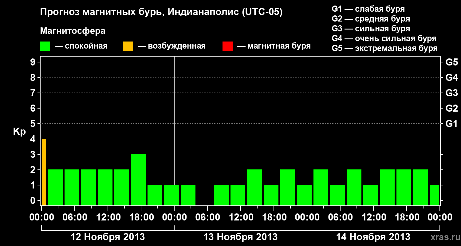 Прогноз магнитных бурь в Индианаполисе — 12 ноября 2013 года