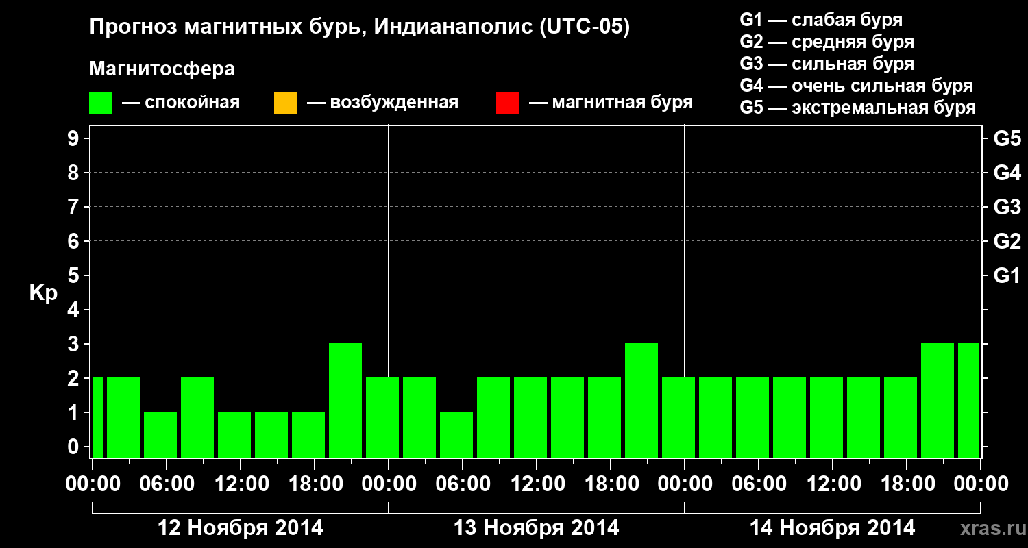 Прогноз магнитных бурь в Индианаполисе — 12 ноября 2014 года