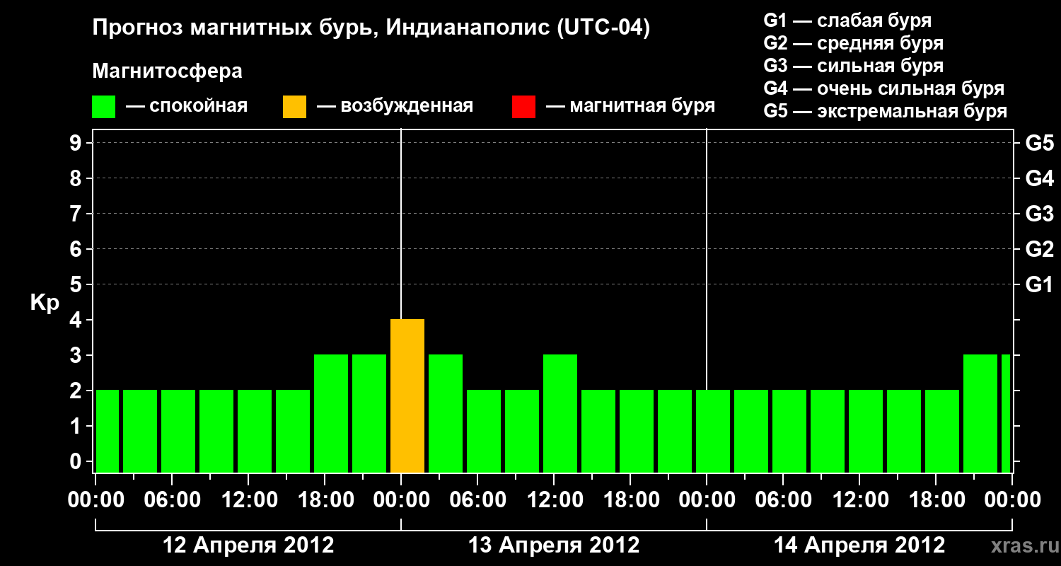 Прогноз магнитных бурь в Индианаполисе на 12 апреля 2012 года