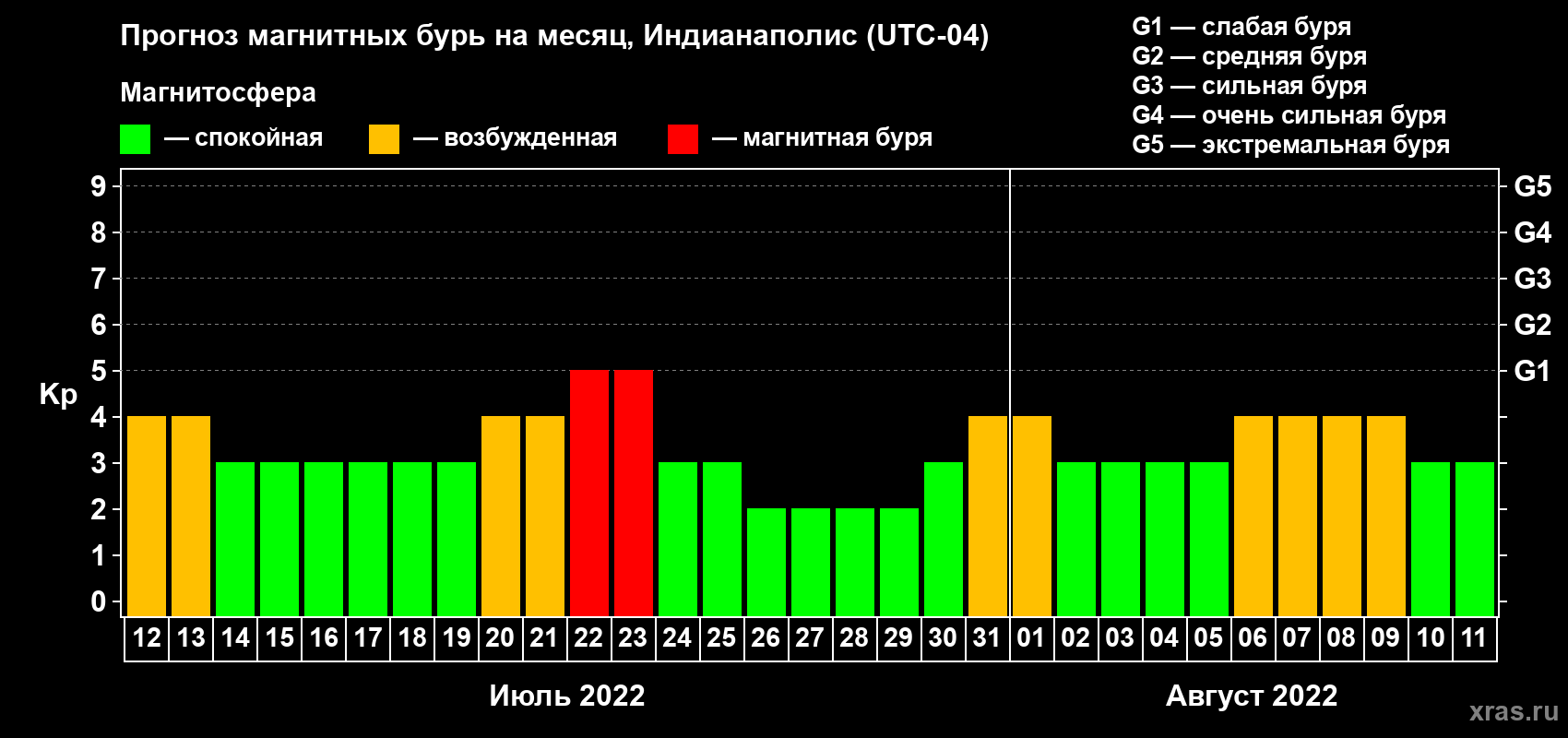 Прогноз магнитных бурь в Индианаполисе — 12 июля 2022 года