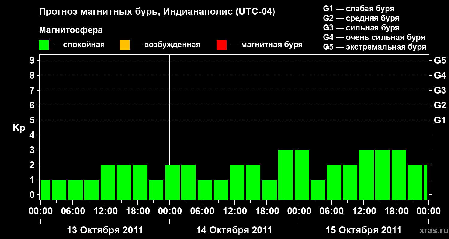 Прогноз магнитных бурь в Индианаполисе — 13 октября 2011 года