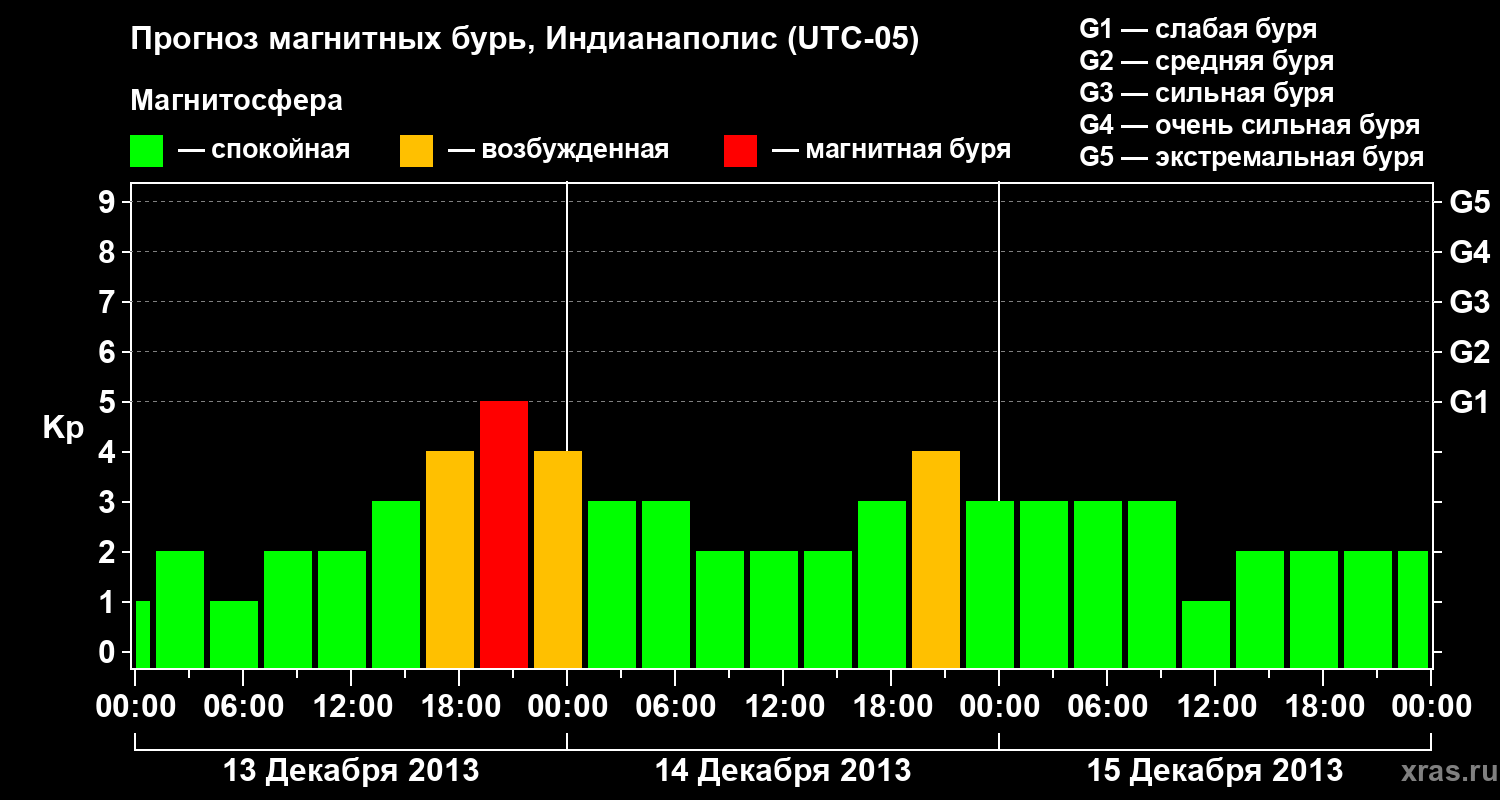 Прогноз магнитных бурь в Индианаполисе на 13 декабря 2013 года