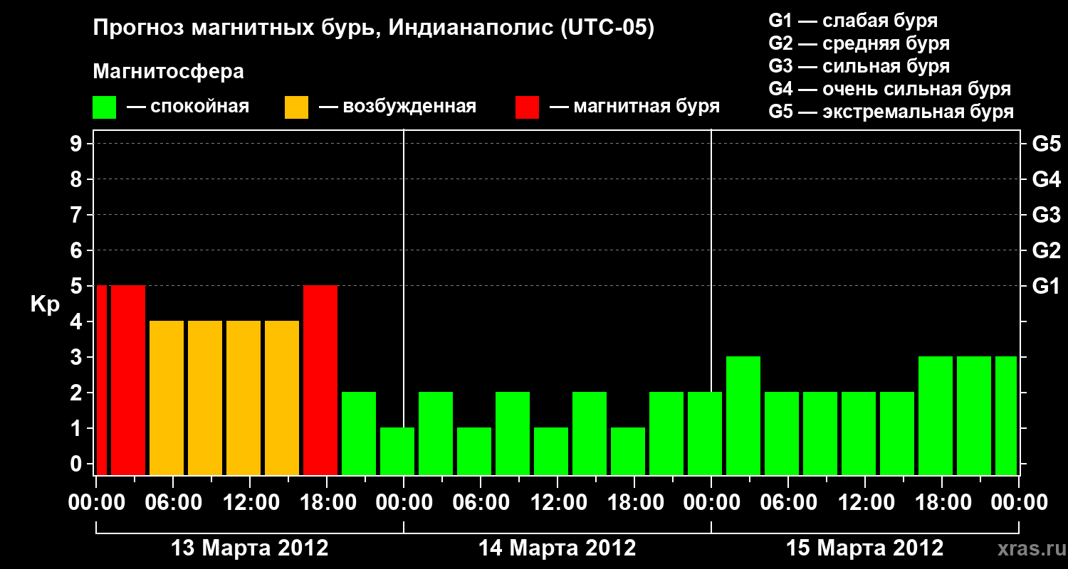 Прогноз магнитных бурь в Индианаполисе на 13 марта 2012 года