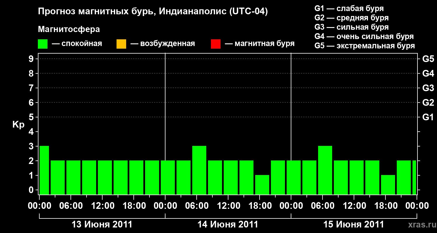 Прогноз магнитных бурь в Индианаполисе — 13 июня 2011 года