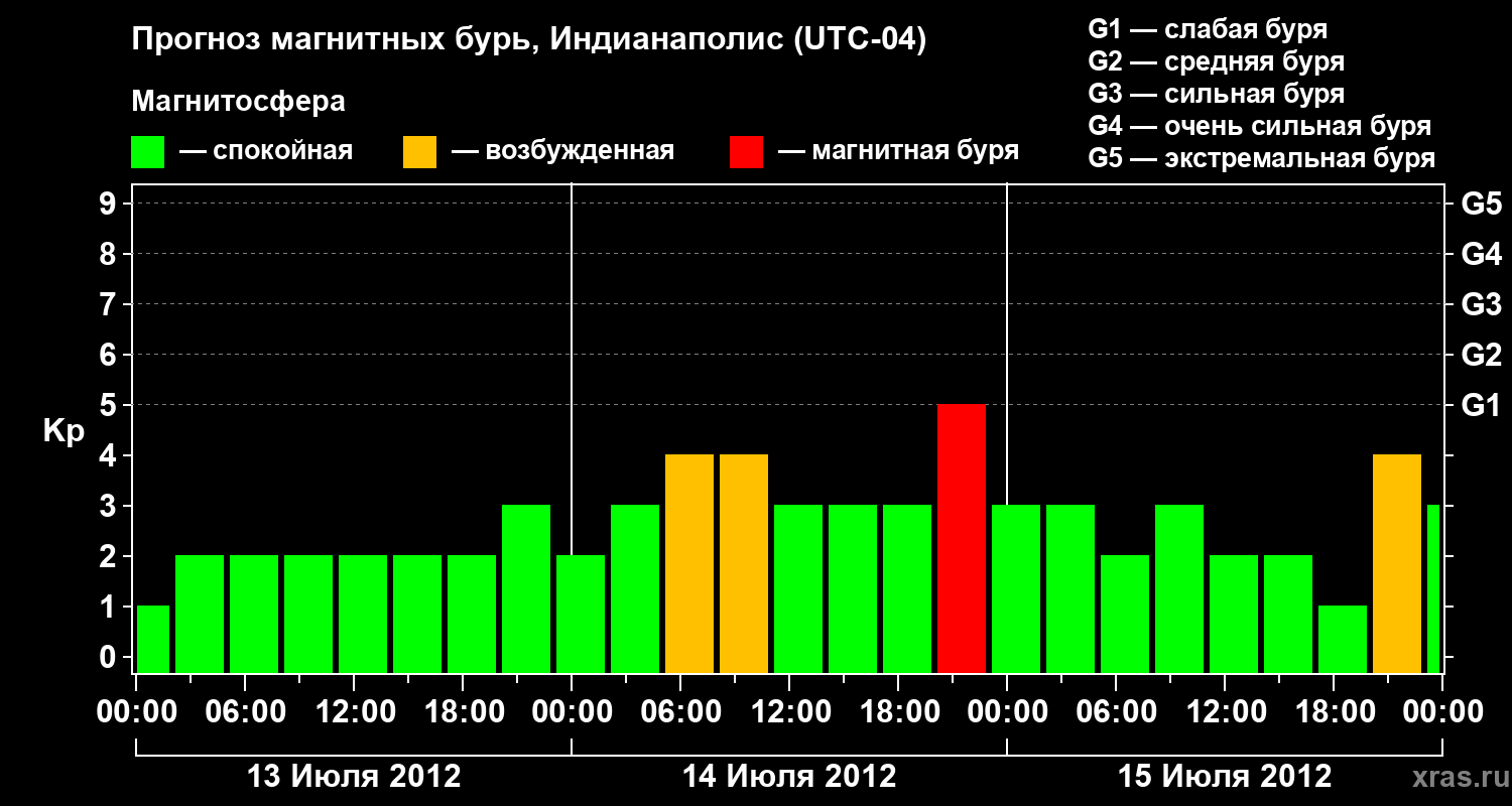 Прогноз магнитных бурь в Индианаполисе на 13 июля 2012 года