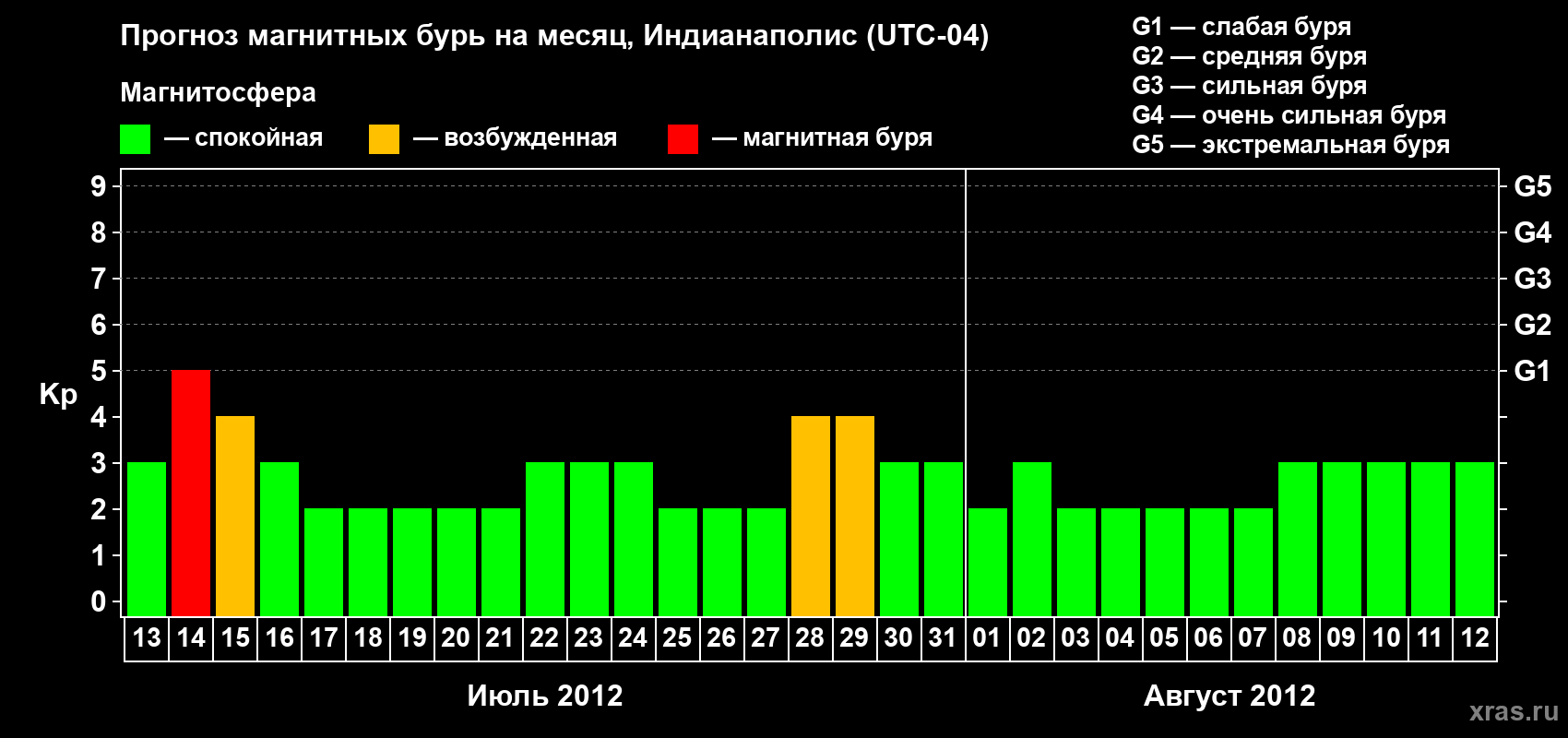 Прогноз магнитных бурь в Индианаполисе — 13 июля 2012 года
