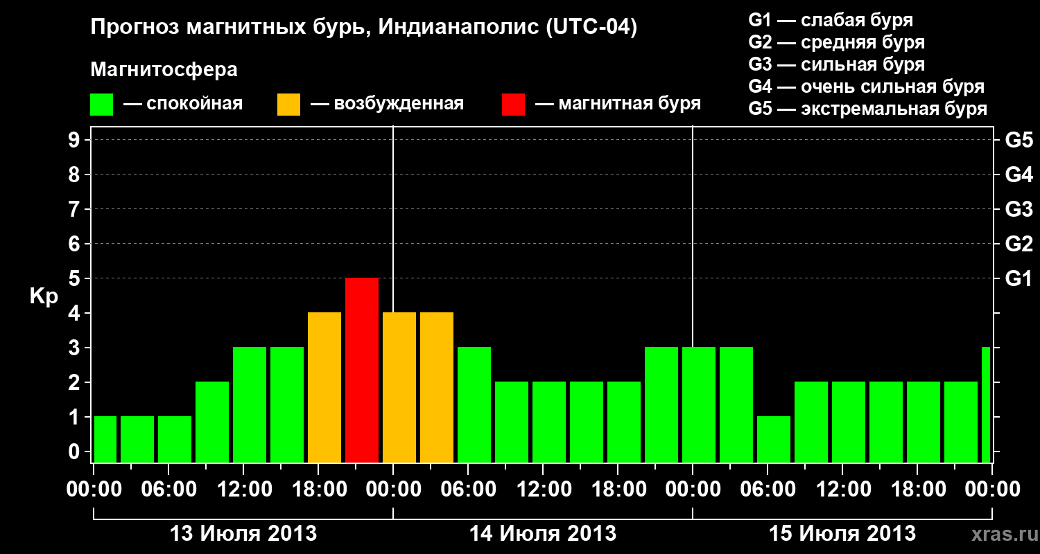 Прогноз магнитных бурь в Индианаполисе на 13 июля 2013 года