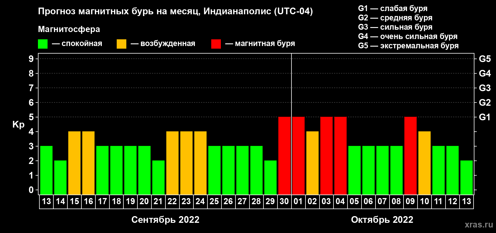Прогноз магнитных бурь в Индианаполисе на 13 сентября 2022 года