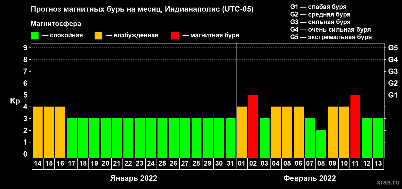 Прогноз магнитных бурь в Индианаполисе — 14 января 2022 года