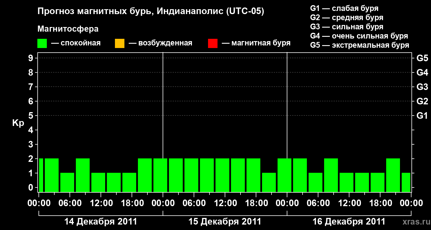 Прогноз магнитных бурь в Индианаполисе — 14 декабря 2011 года