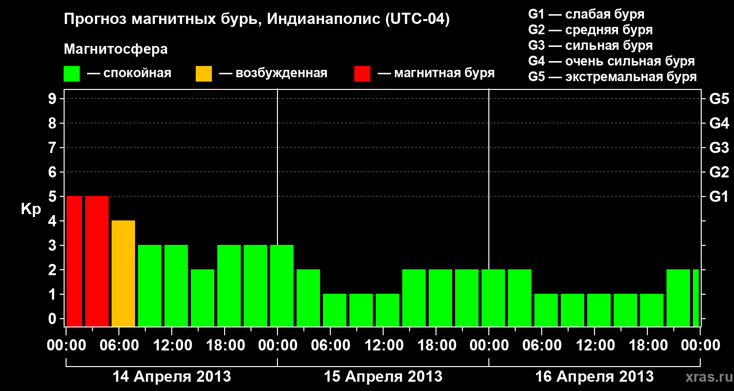 Прогноз магнитных бурь в Индианаполисе на 14 апреля 2013 года
