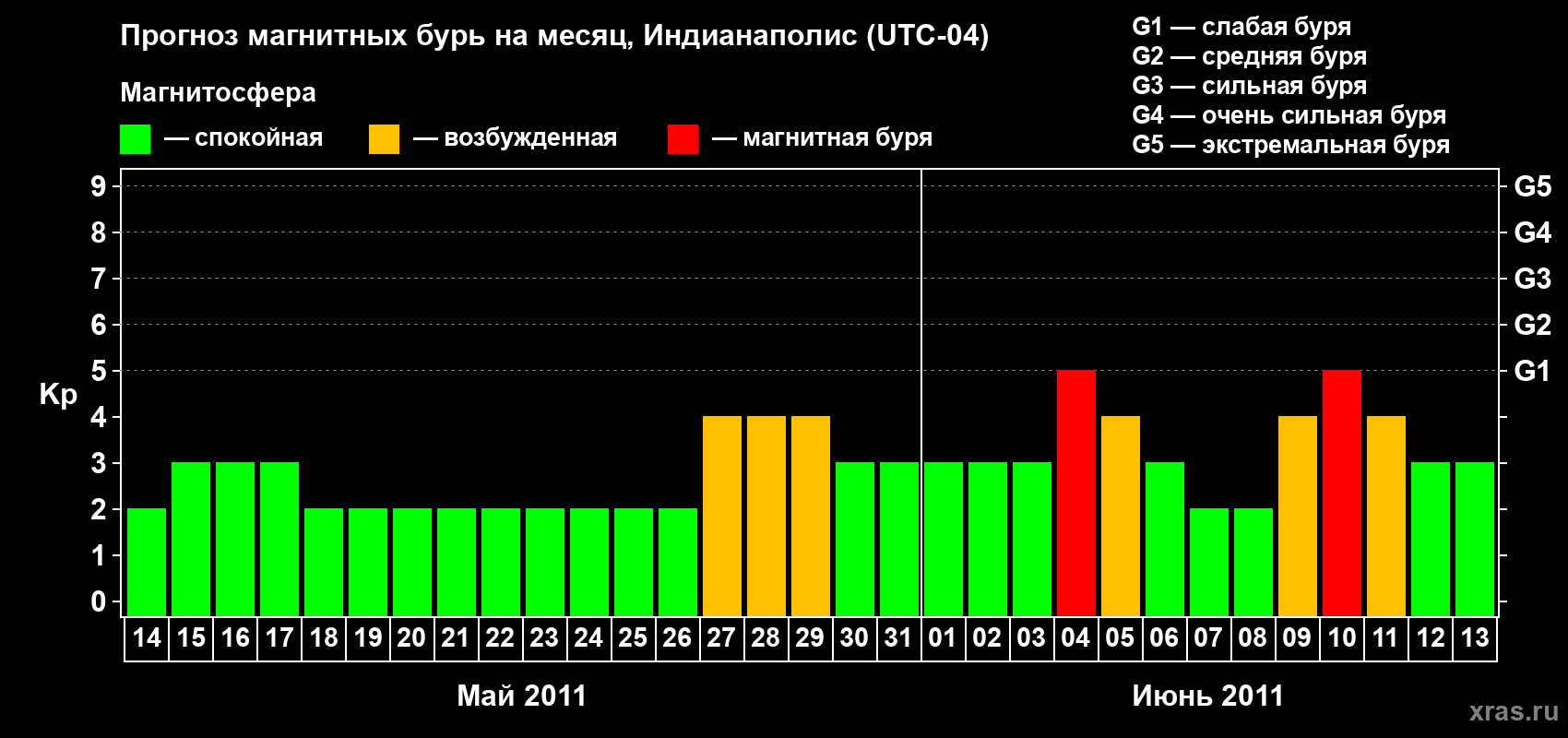Прогноз магнитных бурь в Индианаполисе — 14 мая 2011 года