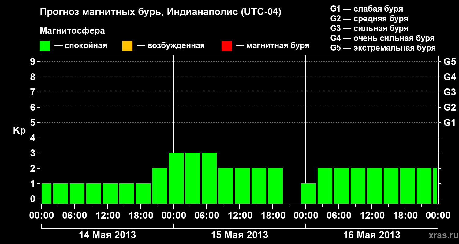 Прогноз магнитных бурь в Индианаполисе — 14 мая 2013 года