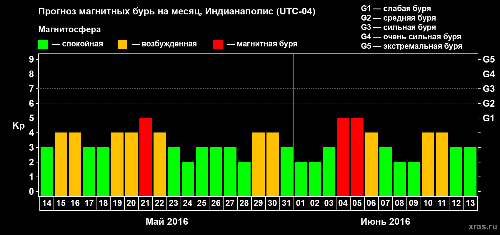 Прогноз магнитных бурь в Индианаполисе на 14 мая 2016 года