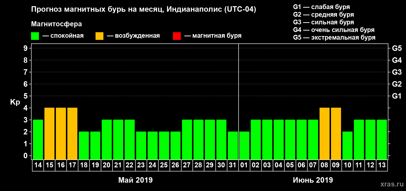 Прогноз магнитных бурь в Индианаполисе на 14 мая 2019 года