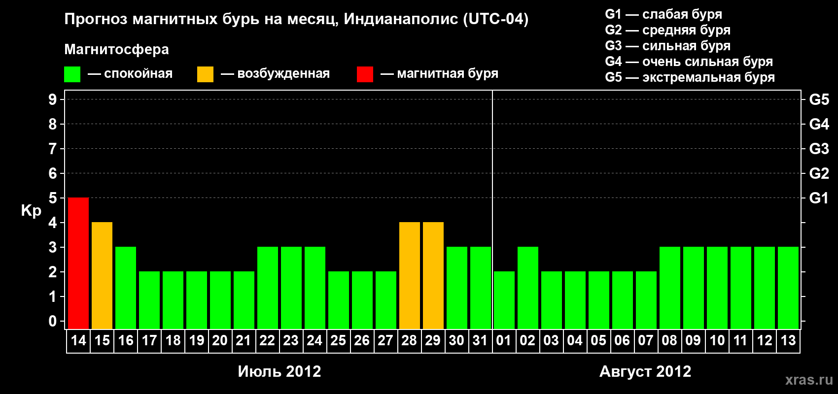 Прогноз магнитных бурь в Индианаполисе — 14 июля 2012 года