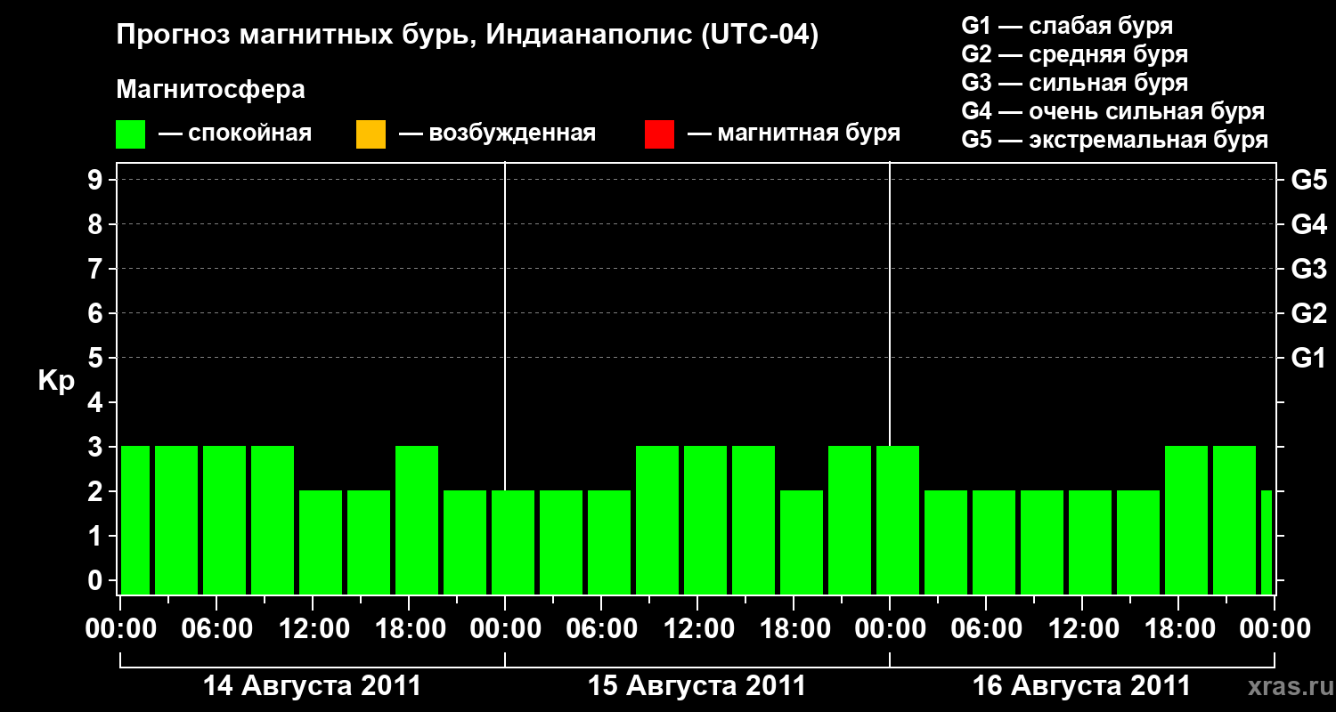 Прогноз магнитных бурь в Индианаполисе на 14 августа 2011 года
