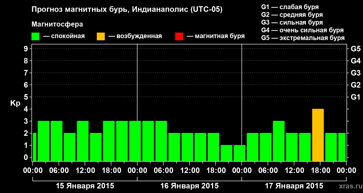 Прогноз магнитных бурь в Индианаполисе — 15 января 2015 года