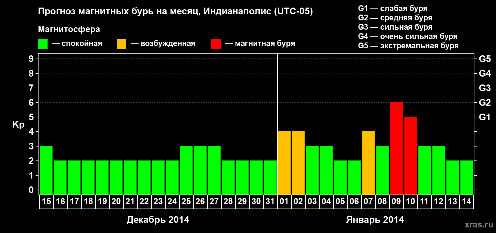 Прогноз магнитных бурь в Индианаполисе — 15 декабря 2013 года