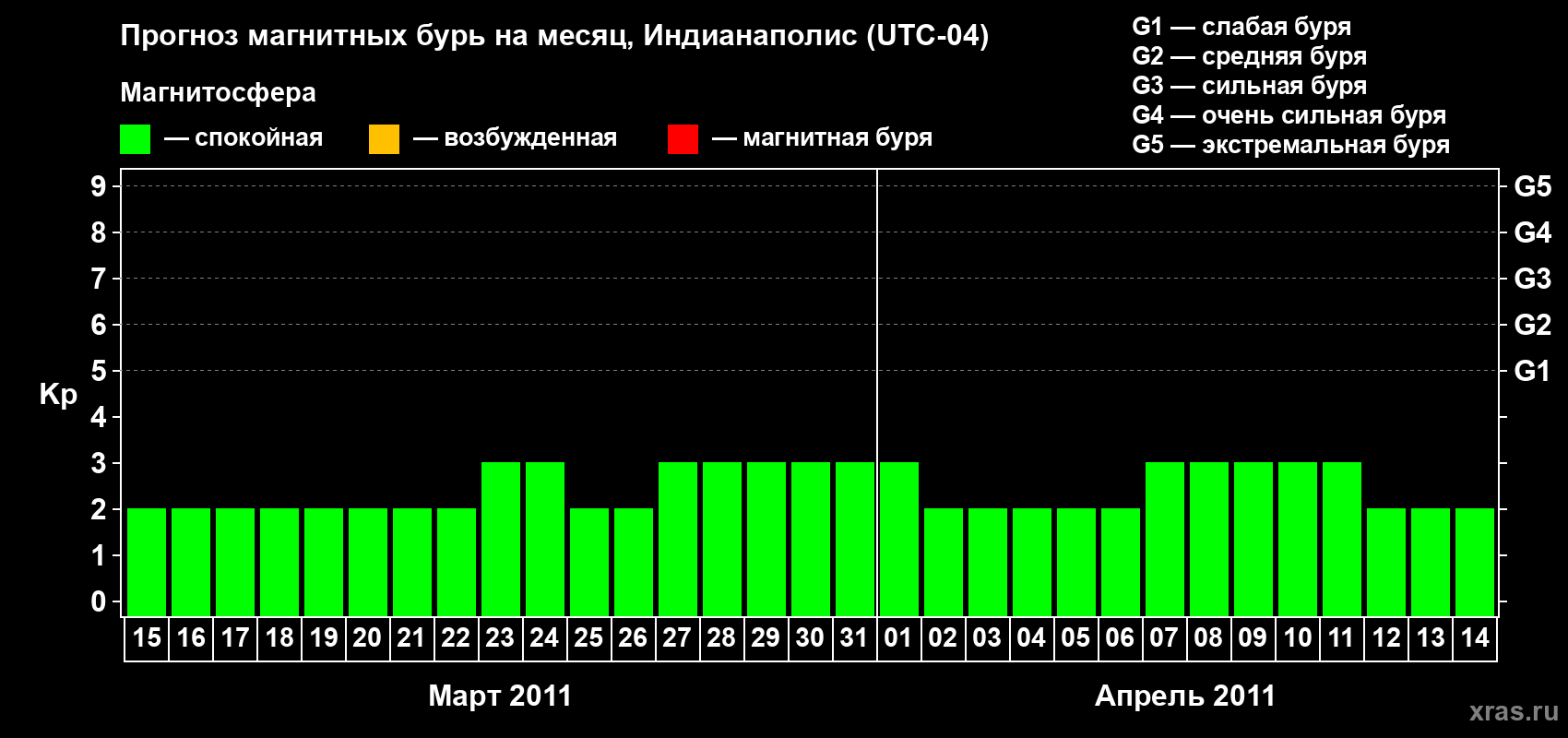 Прогноз магнитных бурь в Индианаполисе — 15 марта 2011 года