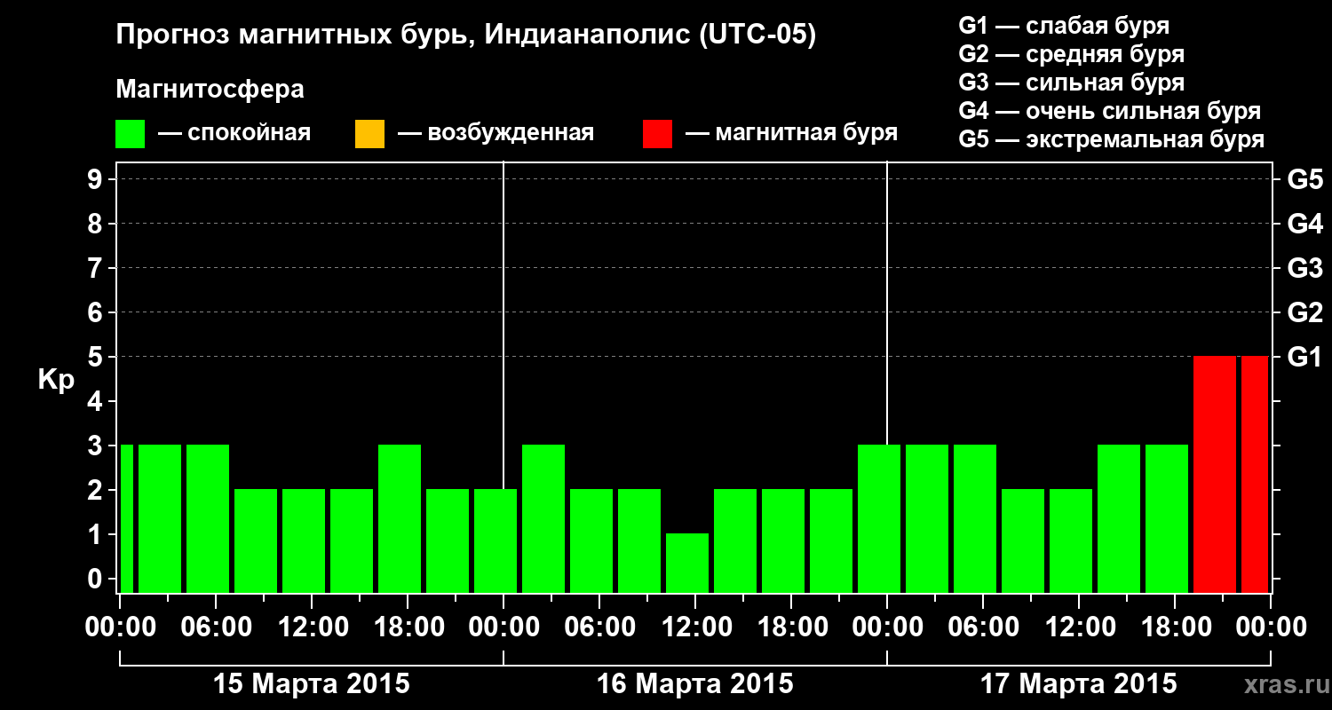 Прогноз магнитных бурь в Индианаполисе — 15 марта 2015 года