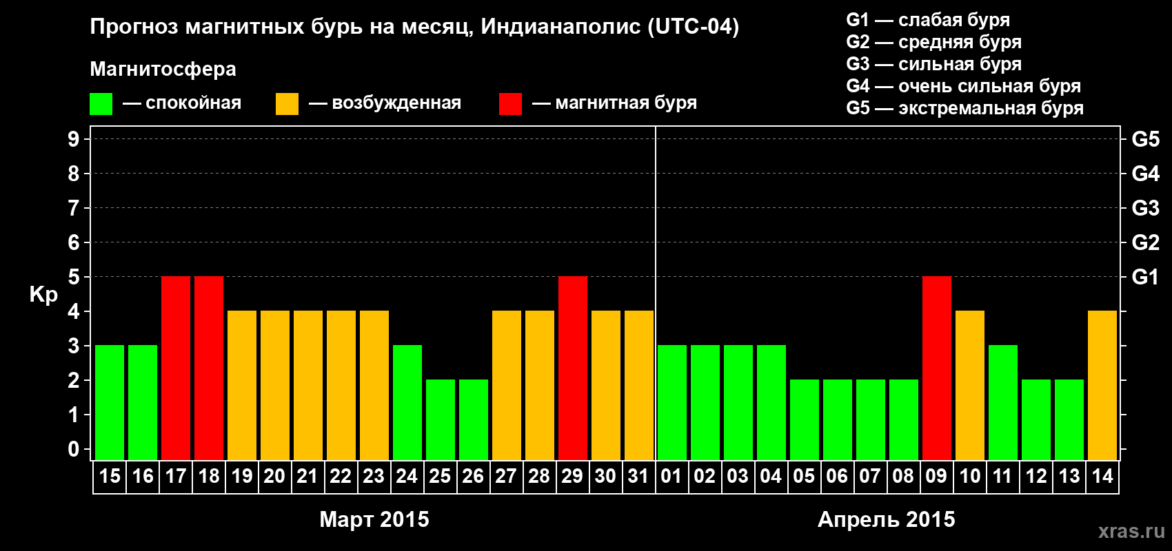 Прогноз магнитных бурь в Индианаполисе на 15 марта 2015 года
