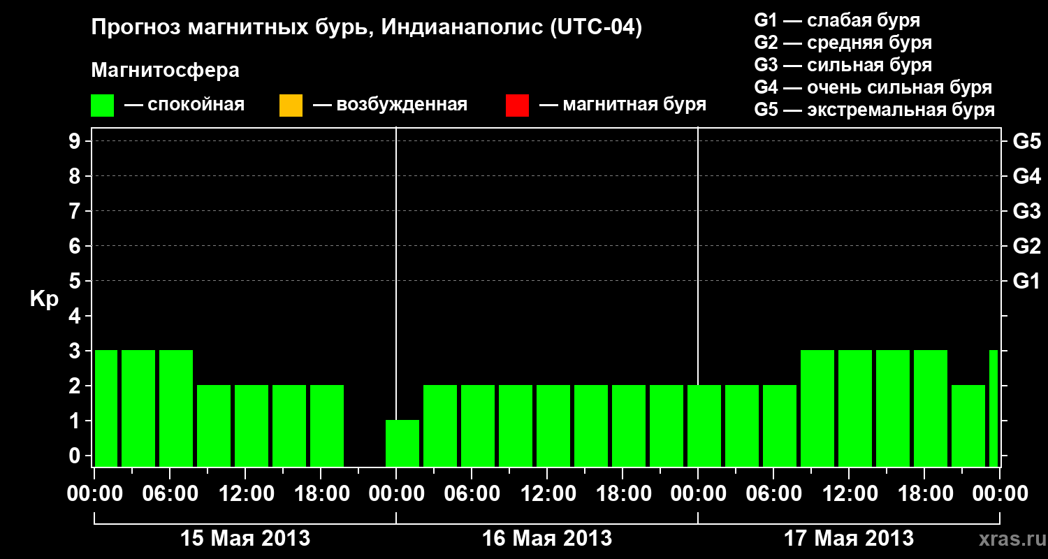 Прогноз магнитных бурь в Индианаполисе на 15 мая 2013 года