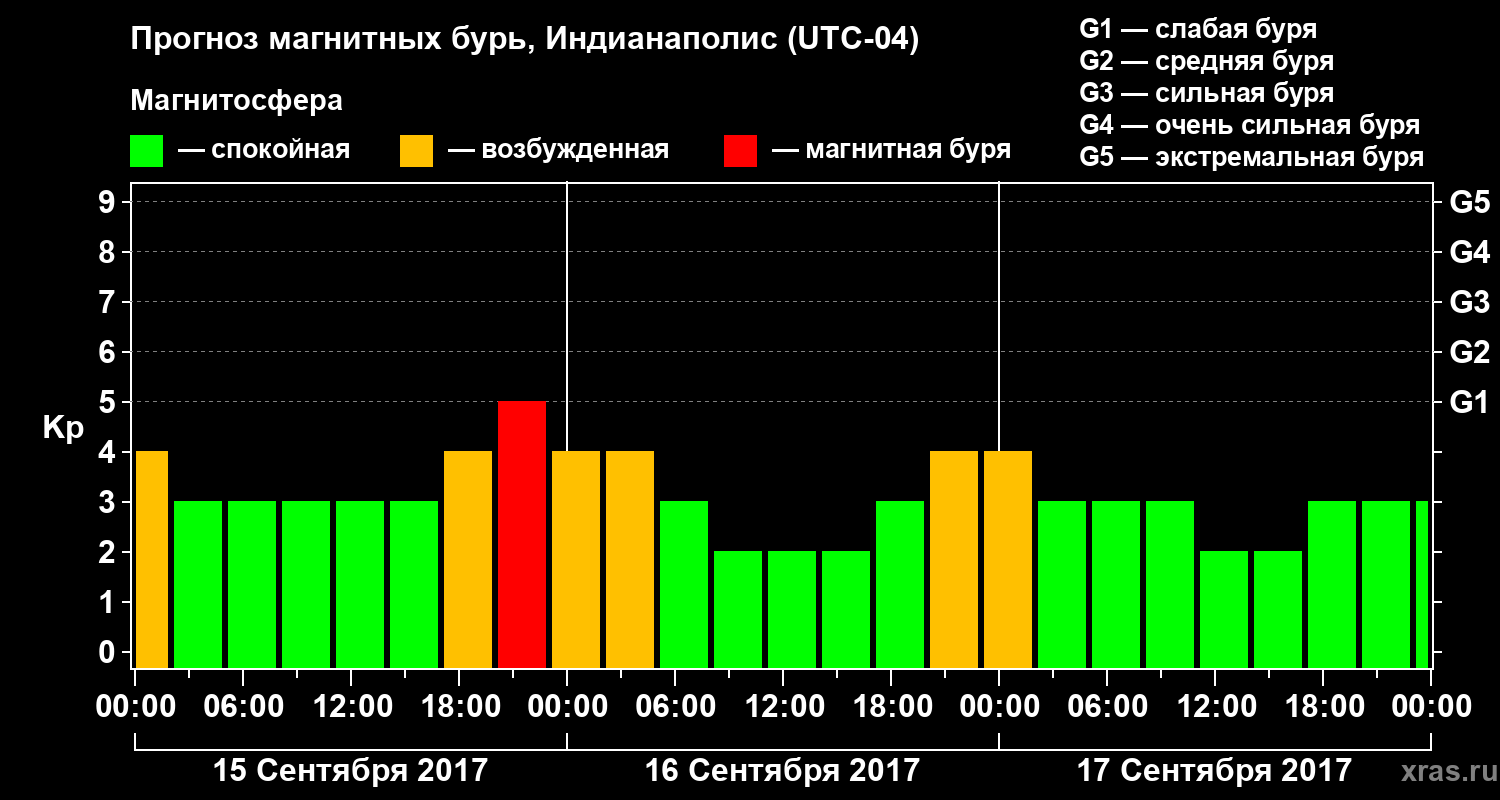 Прогноз магнитных бурь в Индианаполисе на 15 сентября 2017 года