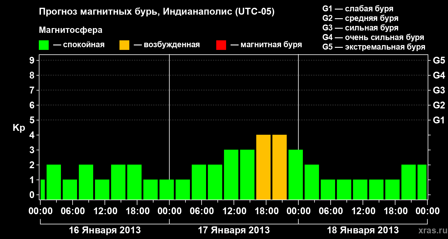 Прогноз магнитных бурь в Индианаполисе — 16 января 2013 года