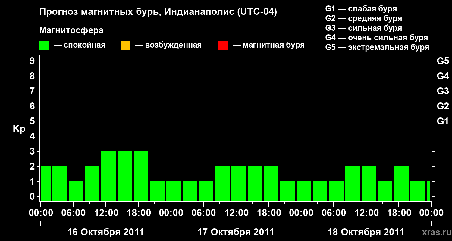 Прогноз магнитных бурь в Индианаполисе на 16 октября 2011 года
