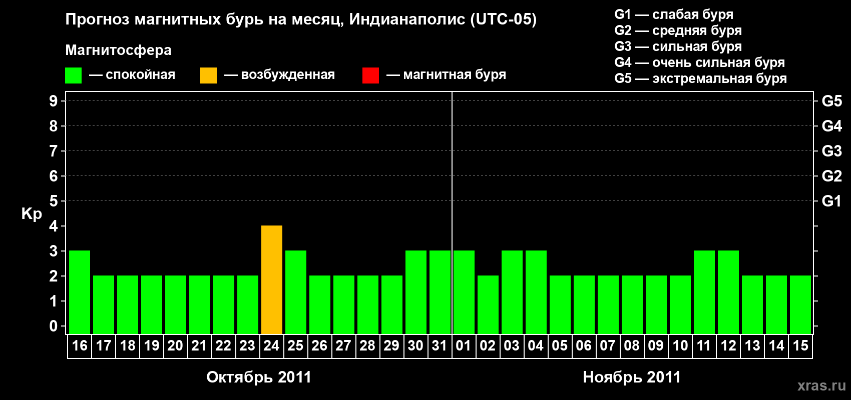 Прогноз магнитных бурь в Индианаполисе — 16 октября 2011 года