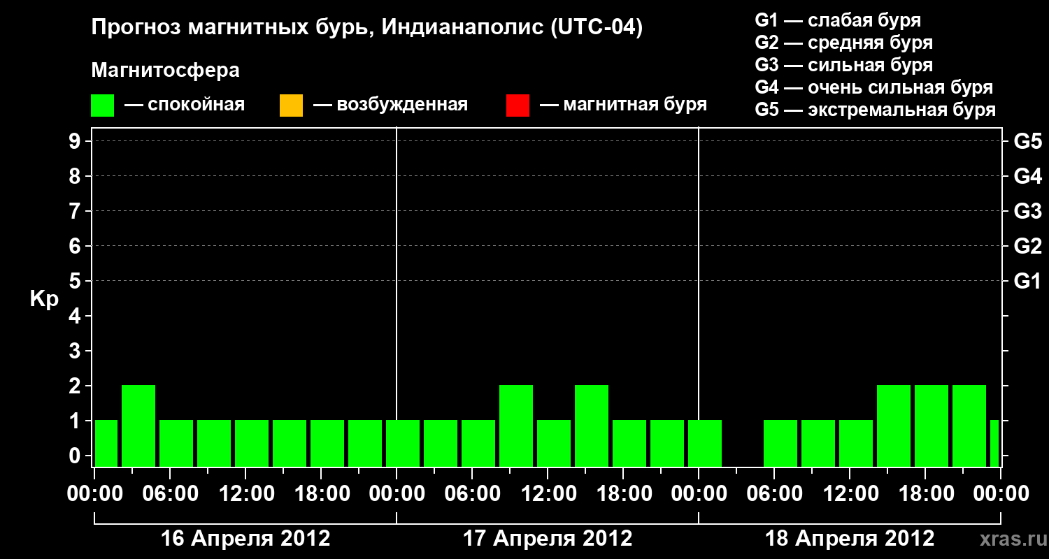Прогноз магнитных бурь в Индианаполисе на 16 апреля 2012 года