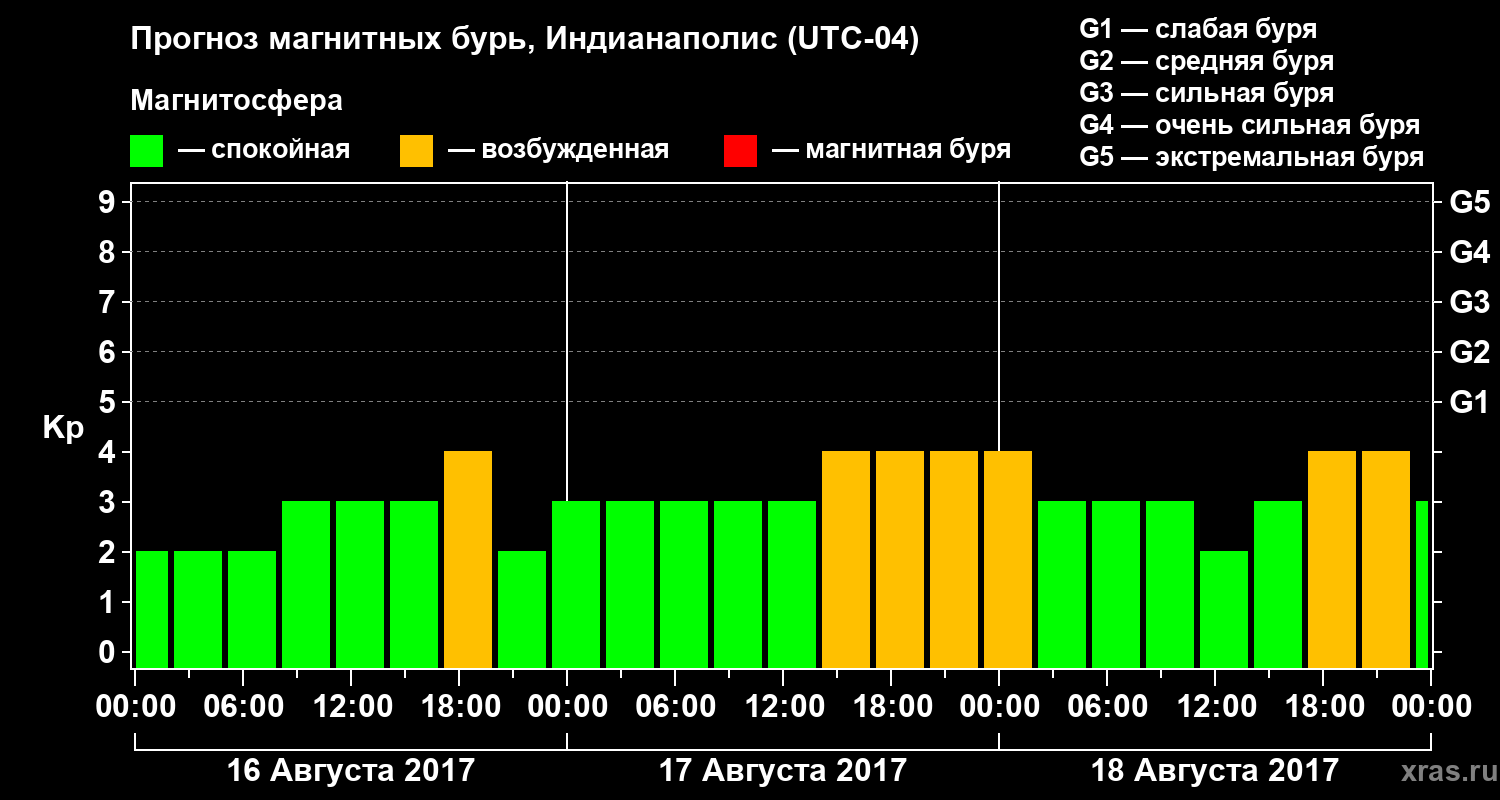 Прогноз магнитных бурь в Индианаполисе на 16 августа 2017 года