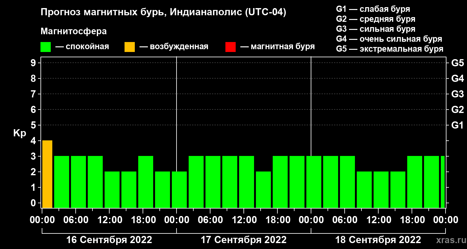 Прогноз магнитных бурь в Индианаполисе на 16 сентября 2022 года