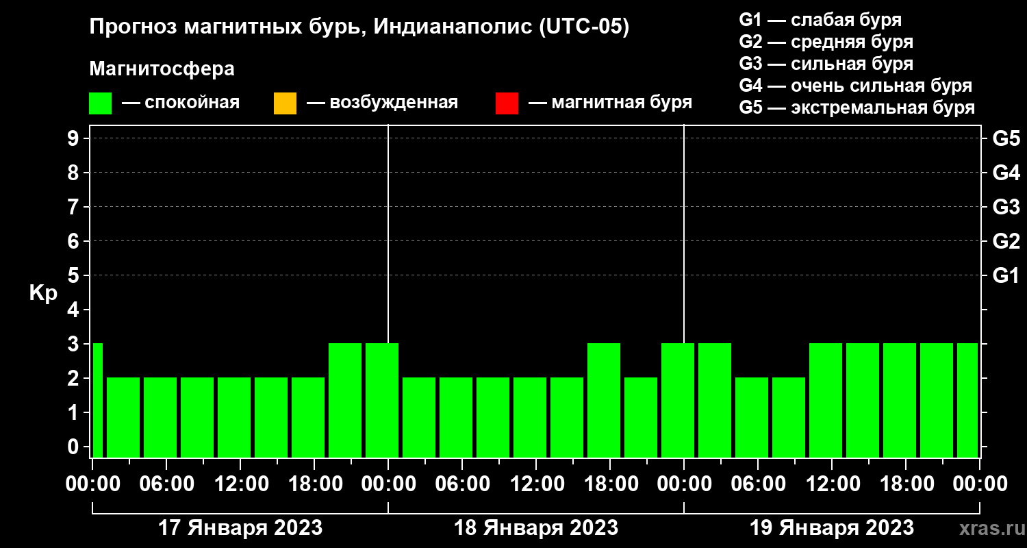 Прогноз магнитных бурь в Индианаполисе — 17 января 2023 года