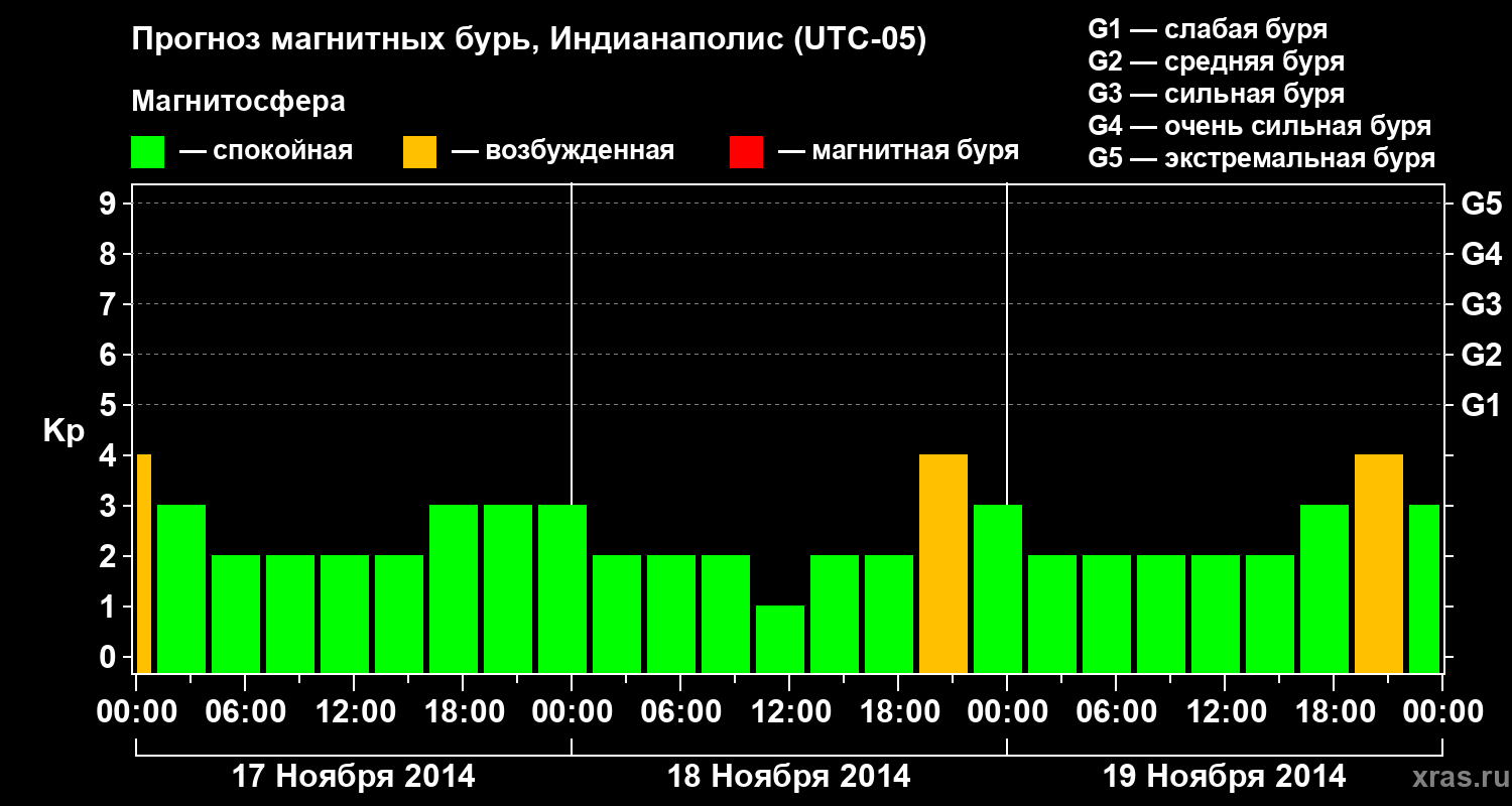 Прогноз магнитных бурь в Индианаполисе — 17 ноября 2014 года