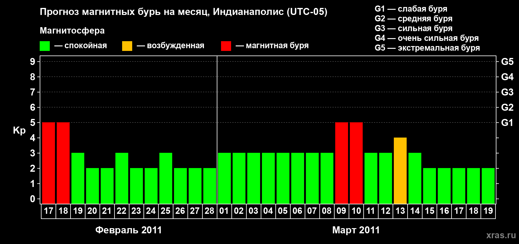 Прогноз магнитных бурь в Индианаполисе — 17 февраля 2011 года