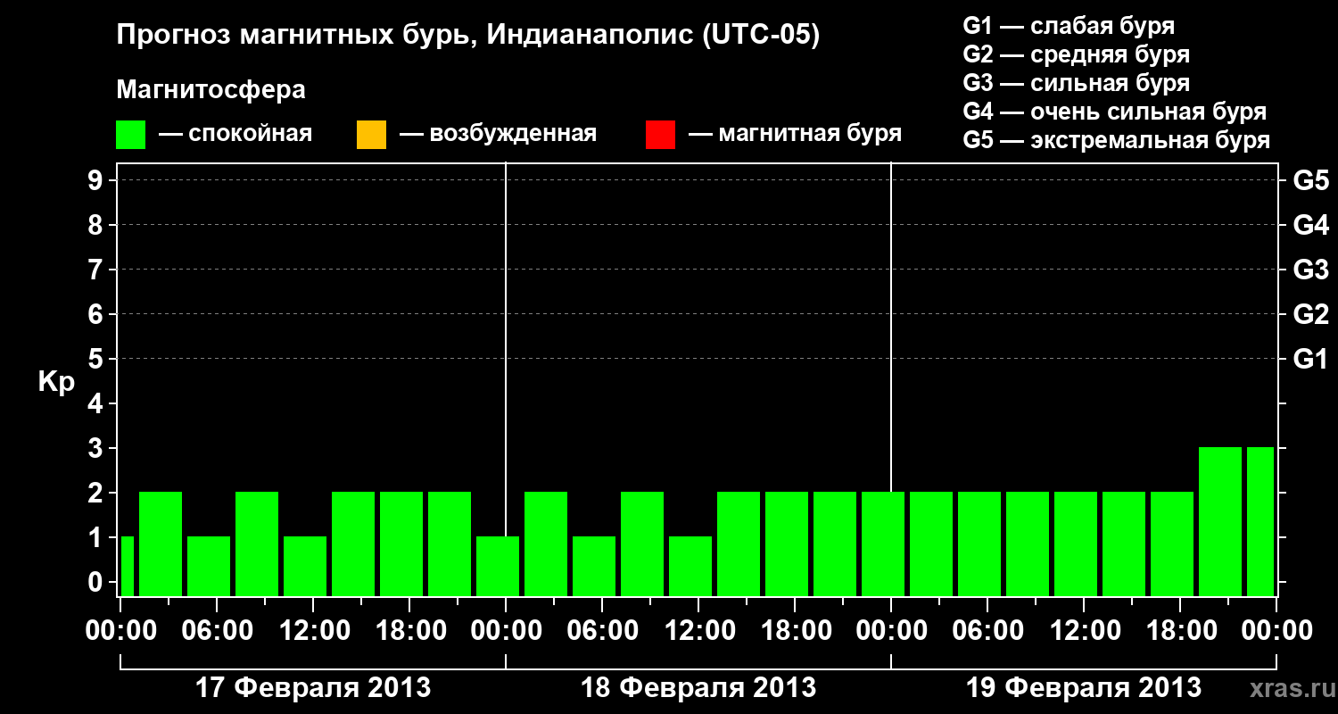 Прогноз магнитных бурь в Индианаполисе — 17 февраля 2013 года