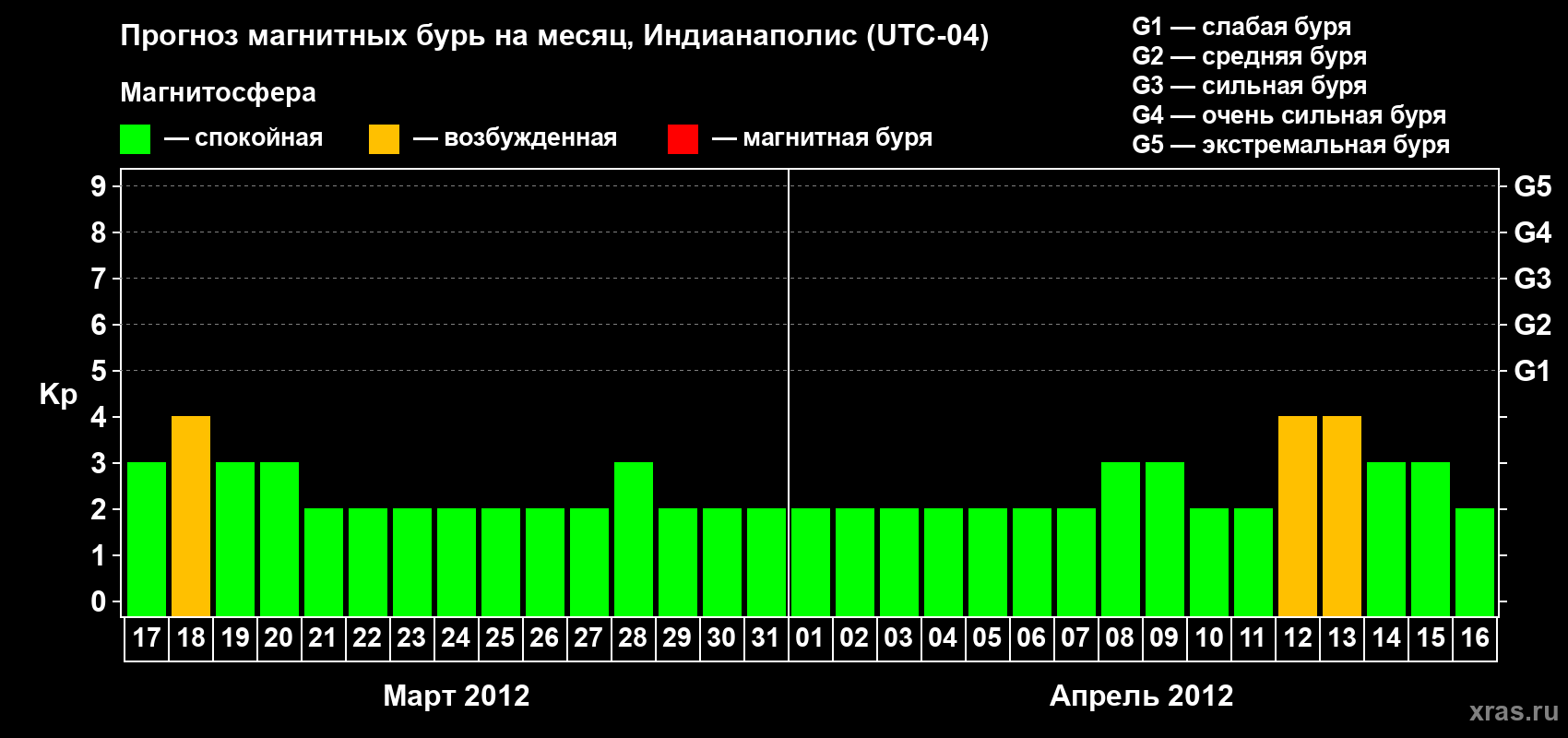 Прогноз магнитных бурь в Индианаполисе на 17 марта 2012 года