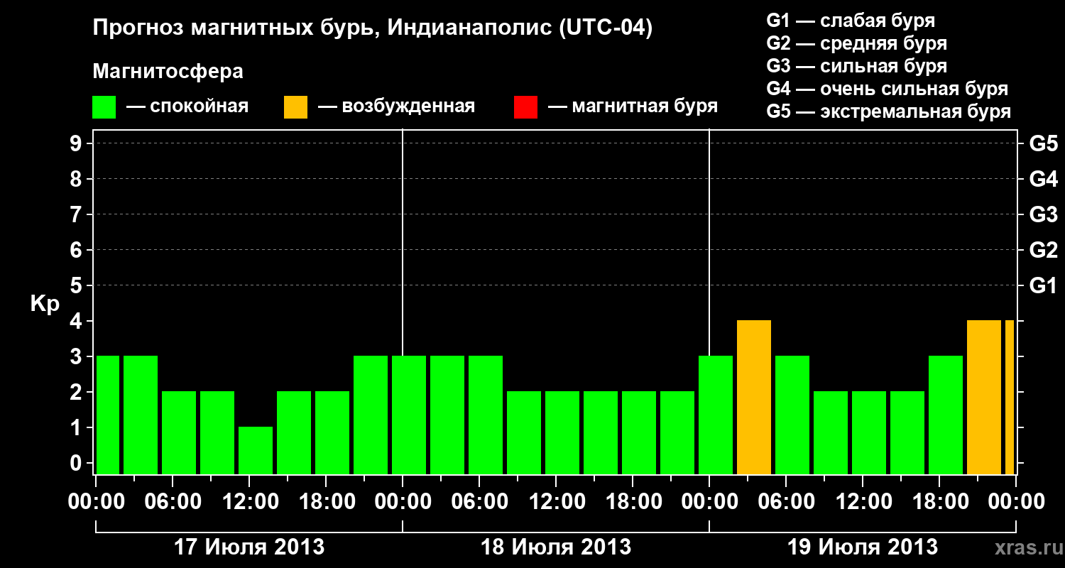 Прогноз магнитных бурь в Индианаполисе на 17 июля 2013 года