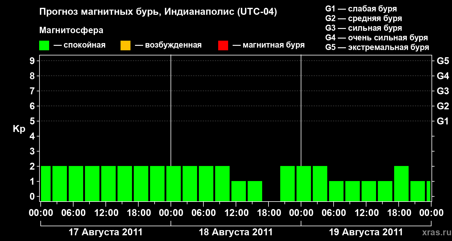 Прогноз магнитных бурь в Индианаполисе на 17 августа 2011 года