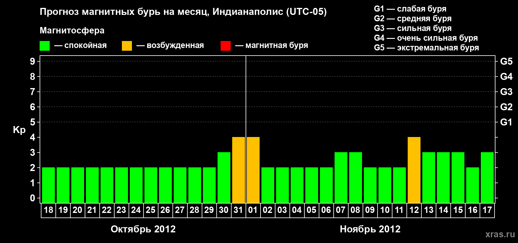 Прогноз магнитных бурь в Индианаполисе — 18 октября 2012 года