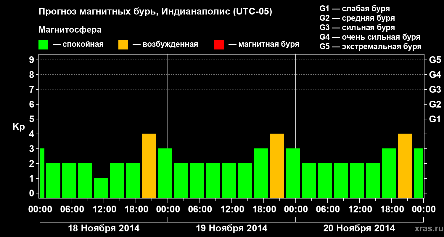 Прогноз магнитных бурь в Индианаполисе — 18 ноября 2014 года