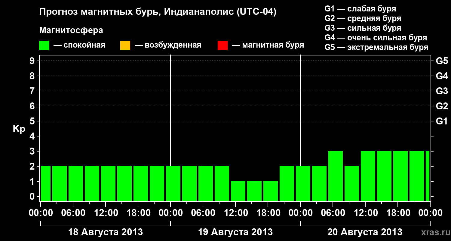 Прогноз магнитных бурь в Индианаполисе на 18 августа 2013 года